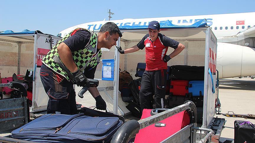 Özellikle uçaklara bagaj taşıyan yer hizmetleri şirketi personeli, sıcak havanın etkisini daha çok hissederken, kargo şirketi görevlileri zaman zaman park halindeki uçakların altında dinlenmeye çalışıyor.