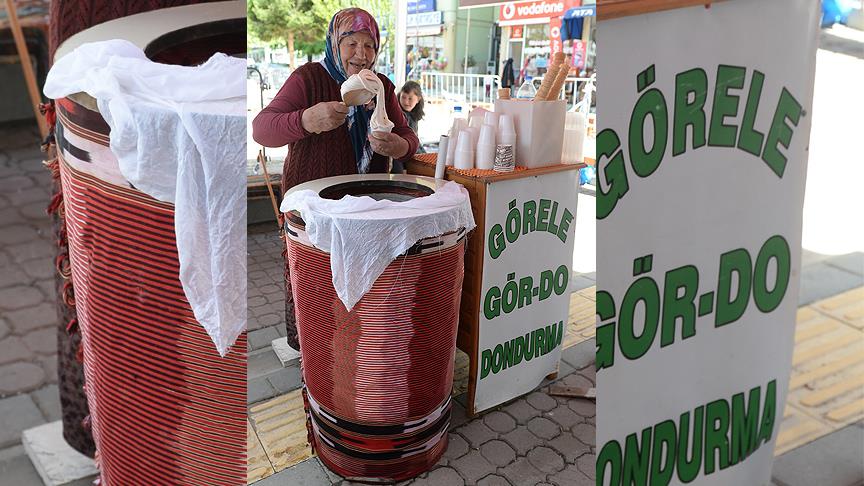 Dondurma yapmayı büyüklerinden öğrenen ve 65 yıldır bu işi yapan Fatma nine, mesleğin sırlarını oğluna da öğretti.
