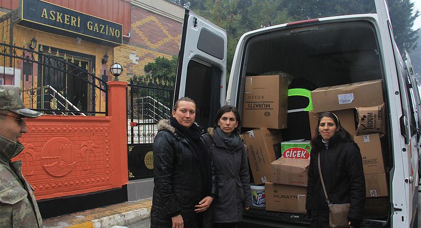 Asker eşleri tarafından evlerde hazırlanan gıda paketleri, İl Jandarma Komutanlığı önünde araçlara yüklendi. Yemek, pasta ve kek gibi gıda malzemelerini taşıyan araçlar daha sonra operasyonlarda yer alan komutanlara ulaştırılmak üzere yola çıkarıldı.