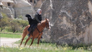 Maria Todorovska Omari, AA muhabirine yaptığı açıklamada, 37 yıldır profesyonel binicilik eğitimi verdiğini, uluslararası yarışmalarda da hakem olarak görev yaptığını söyledi.