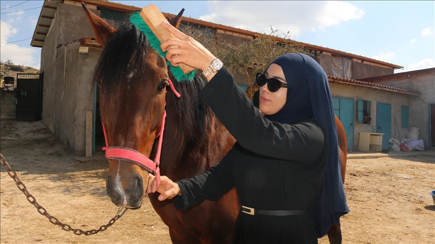 Kurduğu çiftlikte müşterilerine at binmeyi öğreten Rümeysa Demirkıran, AA muhabirine, at sevgisinin gün geçtikçe daha da arttığını söyledi.