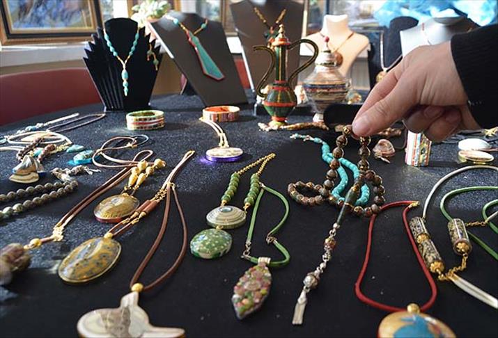 Çubuk Engelliler ve Engelli Dostları Derneği tarafından açılan kağıt sanatı atölyesinde üyeler, atık kağıt parçalarıyla tesbih, yüzük, kolye ve takı yaparak kendilerine gelir sağlıyor.