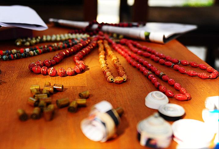 Afyonkarahisar'da bir atölyede atık kağıt parçalarından üretilen tespihler 100-600 liradan alıcı buluyor.