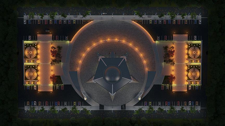Yıldız şeklindeki kapalı alanında 3 bin 500, hilal şeklindeki avlusunda ise 5 bin kişinin namaz kılabileceği caminin yıl sonunda ibadete açılması hedefleniyor.