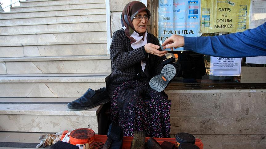 Malatya'da yaşayan ve yaklaşık 8 yıl önce eşini kaybeden 63 yaşındaki Sabite Bütün, tüm zorluklara rağmen 18 yıldır ayakkabı boyacılığı yaparak geçimini sağlıyor.