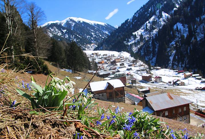 RİZE (AA) - Rize'nin Çamlıhemşin ilçesindeki ünlü turizm merkezi Ayder Yaylası'nda açan kardelenler, baharın müjdecisi olarak görülüyor.