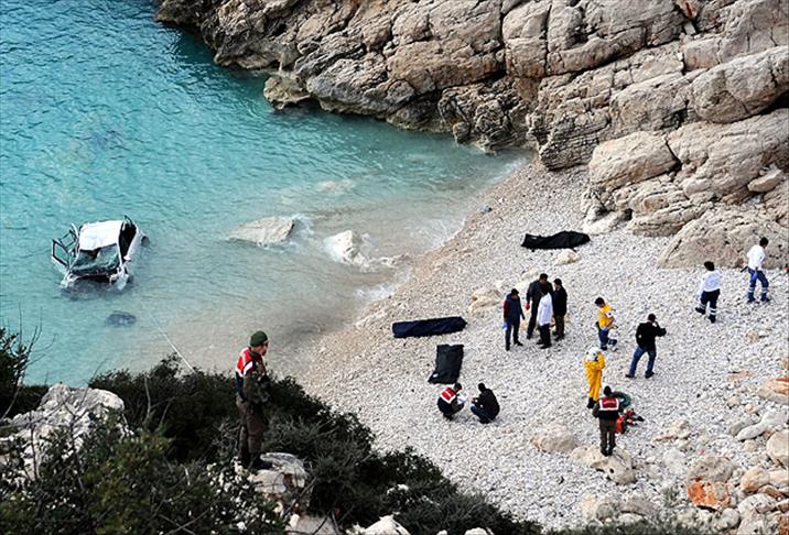 Dalgıçlar tarafından otomobilden çıkarılan anne ve oğlu ile kayalıklara düşen babanın cesetleri, kaza yerinin kayalık ve kurtarma çalışmalarının zor olması nedeniyle denizde yüzdürülen sedyeler ile Sahil Güvenlik botuna alınarak, Demre Çayağzı Limanı'na götürüldü.