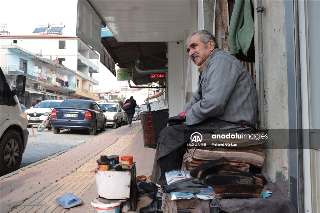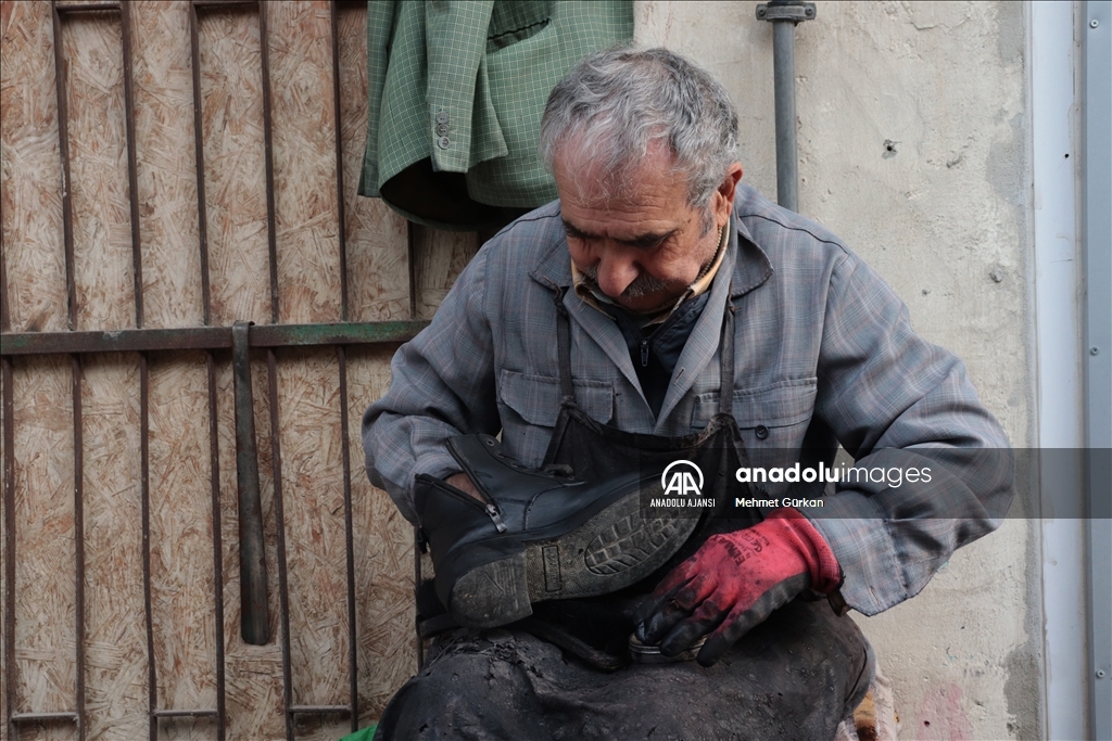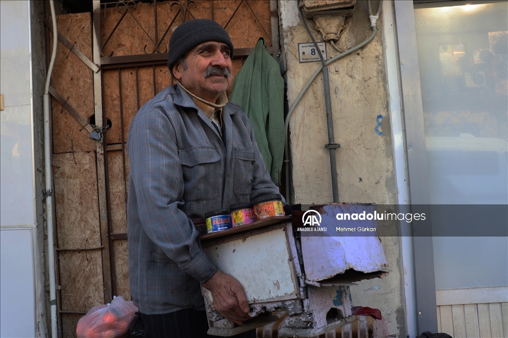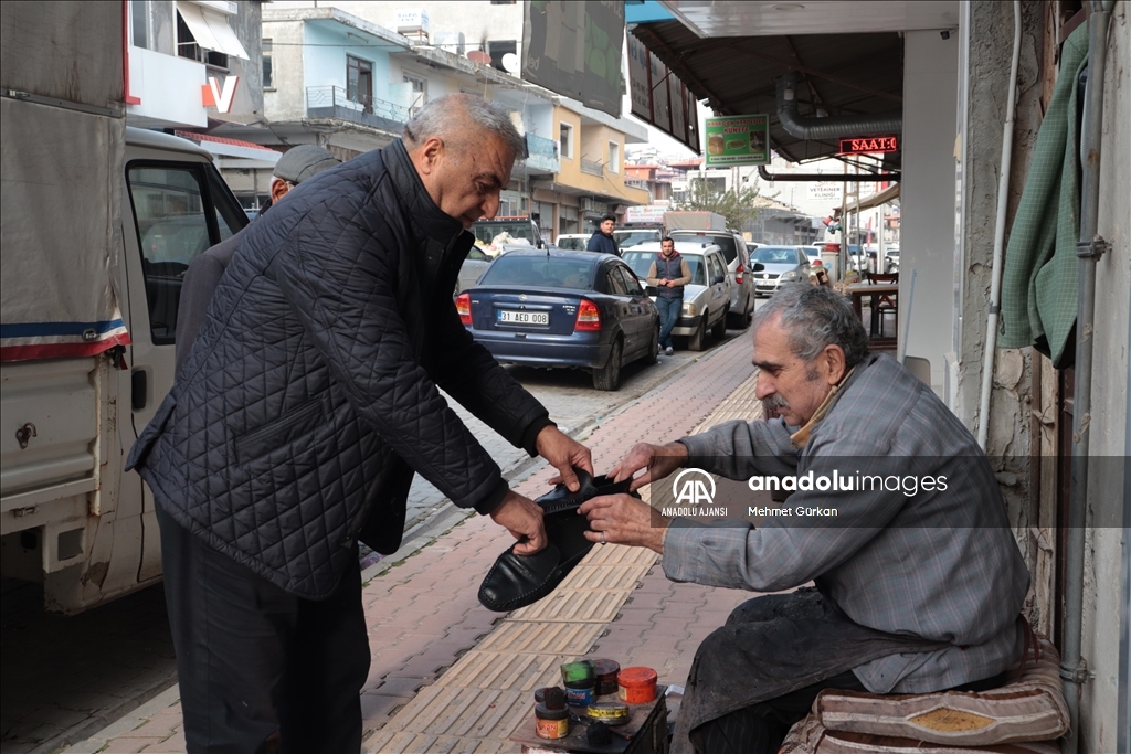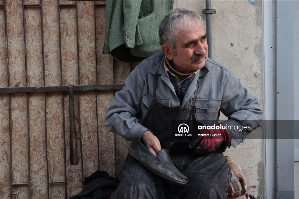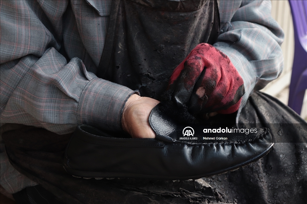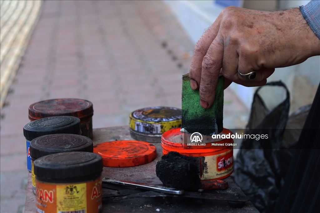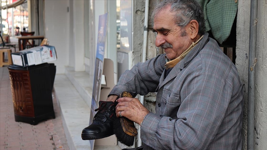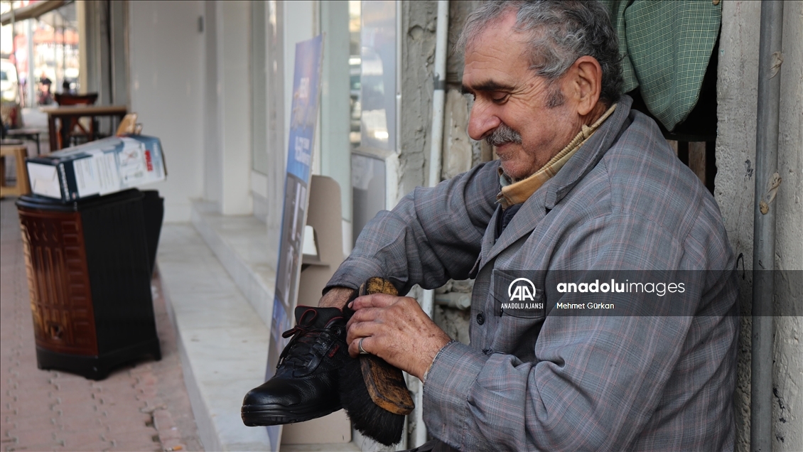 İlyas Kuşoğlu, AA muhabirine, çevredeki çoğu esnafın ayakkabısını kendisinin boyadığını söyledi.
