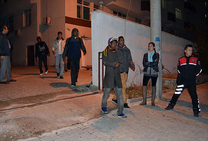 Günlerdir aç ve susuz kaldığı belirlenen kaçaklara polis tarafından kumanya dağıtılıp insani yardımda bulunuldu.