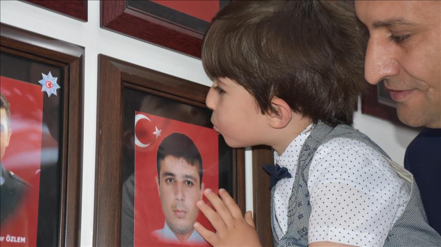 Şırnak'ın Cizre ilçesindeki karakola geçen yıl terör örgütü PKK tarafından bombalı araçla düzenlenen saldırıda şehit olan polis memuru Mehmet Dama'nın 3 yaşına giren oğlu Enes, baba özlemini babasının fotoğrafıyla gideriyor.