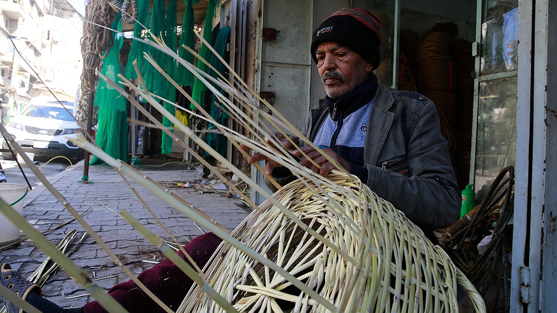 Küçük bir dükkanda babasından devraldığı hasırcılık sanatını icra eden Hüsam Halid, plastik ürünlerin yerini aldığı hasırları özenle üretmeye çalışan nadir esnaflardan birisi.