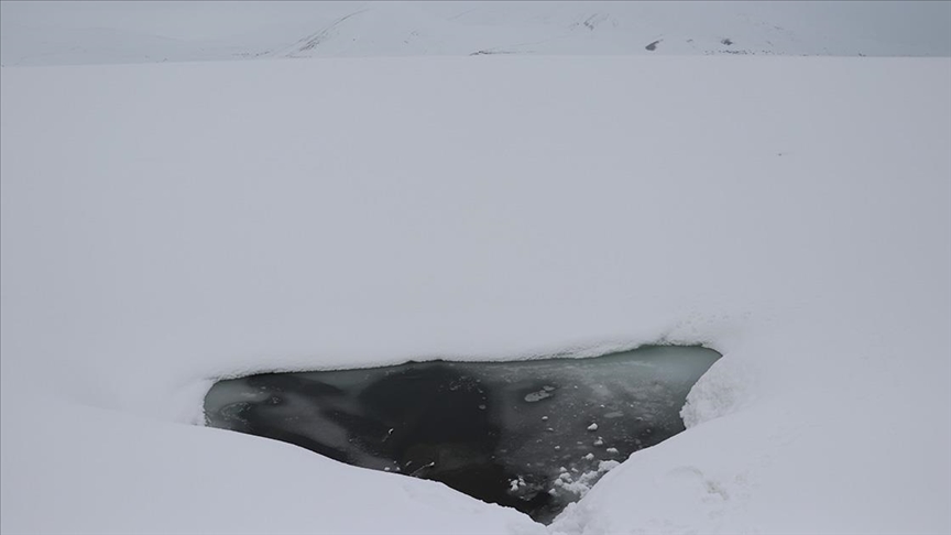 Anlık gelişmeler için AA Canlı Aylardır yüzeyi karla kaplı olan göl bölgesinde bahar mevsiminde adeta çetin kış koşulları etkili oluyor.