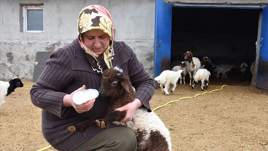 Baharı müjdeleyen oğlak ve kuzulara biberonlu bakım