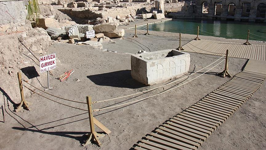Kaplıca Mahallesi'nde yaşayan Mustafa Doğan (64), yaklaşık 30 yıl önce evinin temelini kazarken mermer bir lahit buldu. Tarihi bin 500 yıl öncesine kadar uzanan lahit, bugüne dek Doğan'ın gayretleriyle bahçesinde korundu. Doğan'ın başvurusuyla müze müdürlüğü yetkilileri tarafından teslim alınan lahit, ilçede kazı çalışmaları devam eden Roma Hamamı yerleşkesine nakledildi.