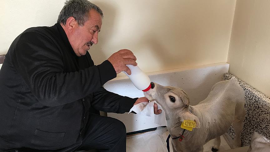Türkmen, yaşamasını çok istediği için "Ümitcan" adını verdiği buzağıyı evinin bir odasında oluşturduğu bölümde beslemeye başladı.