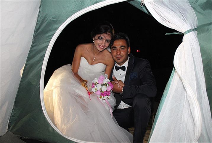 Peribacalarında akrabalarıyla çadırlar kuran çift, yaktıkları ateş ve müzik eşliğinde sabaha kadar eğlendi. Dağcılık ve trekking sporuyla uğraşan çift, balayını kamp ortamında geçirmeyi hayal ettikleri için böyle bir organizasyon düzenlediklerini söyledi.