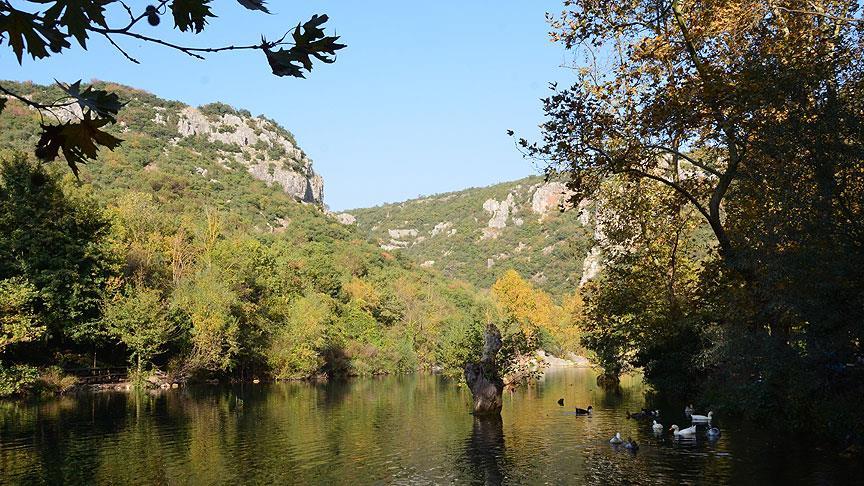 Türkiye'nin en güzel yürüyüş rotalarından biri olarak gösterilen 1,5 kilometre uzunluğundaki Ballıkayalar Kanyonu, sarı ve yeşilin tonlarıyla sonbaharın güzelliklerini yansıtıyor.