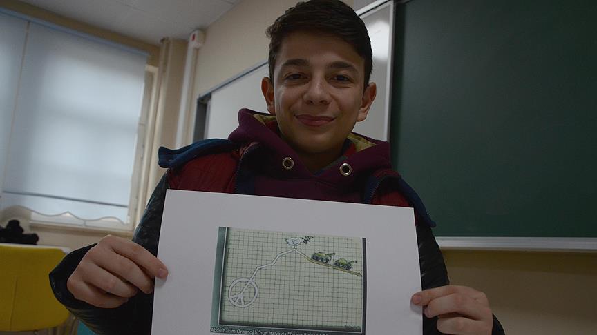 16 yaşındaki Abdulhakim Orhanoğlu, İtalya'daki Spilimbergo Ortaöğretim Enstitüsünce düzenlenen "Barış ve Hoşgörü" konulu Uluslararası Karikatür Yarışması'nda 2014 ve 2016'da birincilik kazandı.