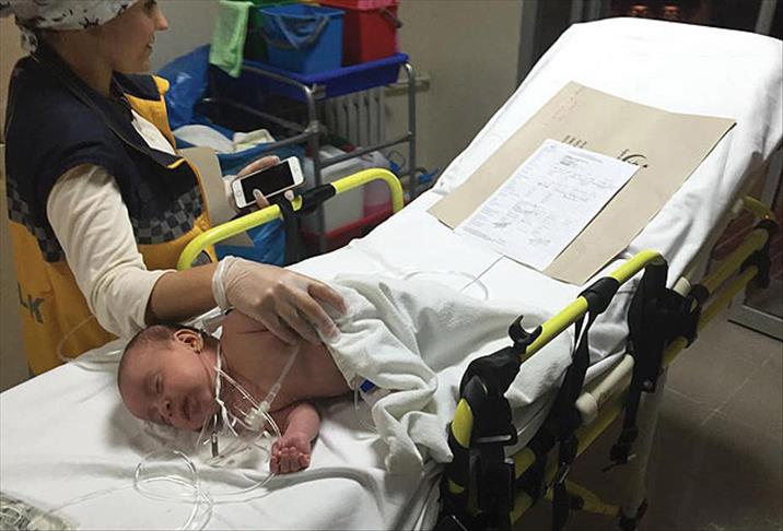 İlk müdahalesinin ardından Bursa'daki Uludağ Üniversitesi Tıp Fakültesi Hastanesine sevk edilen bebeğin hayati tehlikeyi atlattığı öğrenildi.