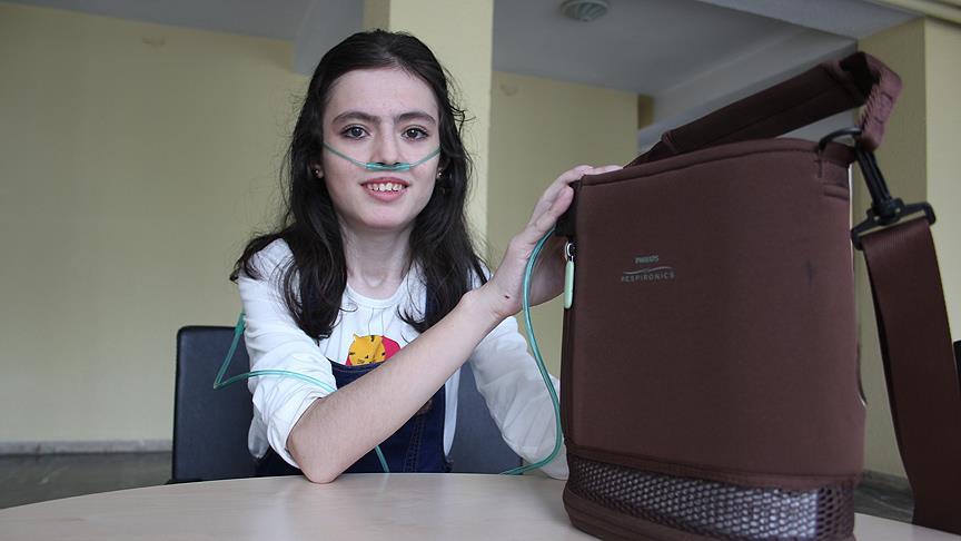 Konya'da, akciğerleri çalışmadığı için taşınabilir oksijen cihazıyla yaşamını sürdüren 15 yaşındaki Emine Mutlu, yaşadığı sıkıntıya rağmen aldığı her nefesle mutlu olduğunu dile getiriyor.