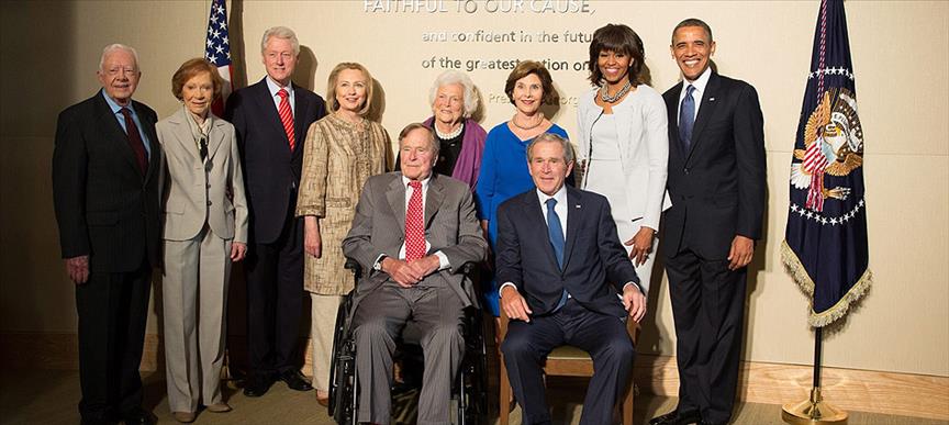 ABD Başkanlarından Jimmy Carter ve Rosalynn Carter, Bill Clinton ve Hillary Rodham Clinton, George H. W. Bush ve Laura Bush, George W. Bush ve Barbara Bush ile Barack Obama ve Michelle Obama, Teksas'ta, George W. Bush Başkanlık Merkezi'nin açılışına katıldılar.