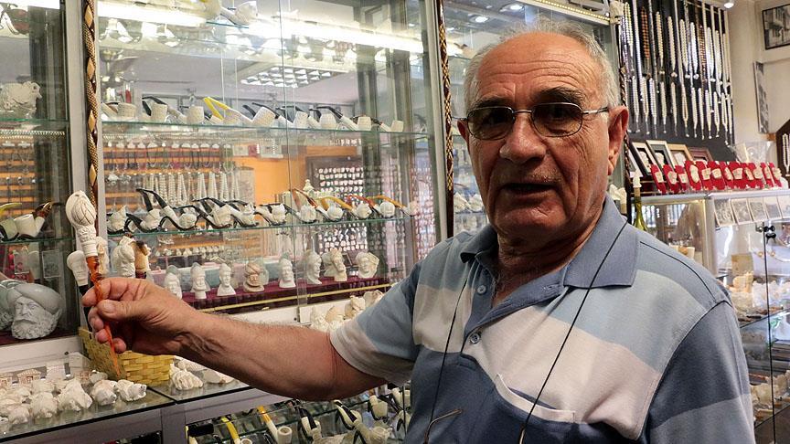 Cihangir Aktaş (69), AA muhabirine yaptığı açıklamada, kentin çevre köylerindeki madenlerden çıkarılan, "deniz köpüğü", "köstebek taşı", "beyaz altın" olarak da bilinen lüle taşının, atölyelerde işlenip pipodan satranç takımına, küçük büstlerden rölyef ve çeşitli hediyelik eşyalara dönüştürüldüğünü söyledi.