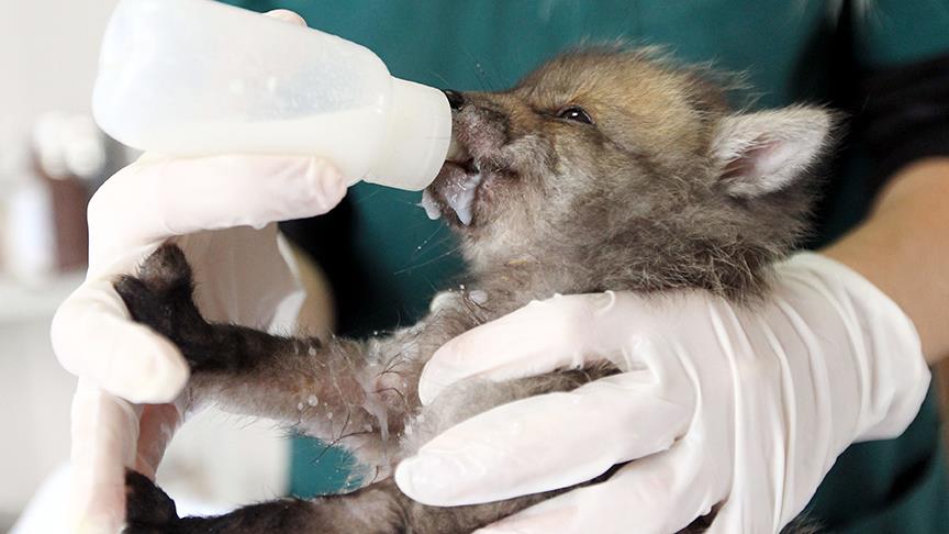 Klinikte 3 haftadır tilki yavrusunu biberonla süt vererek besleyen Tabatabaei, ek gıda olarak da köpek masası veriyor.