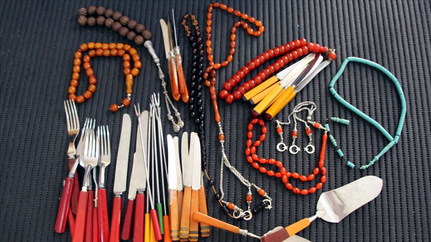 Koleksiyoncuların atölyeye sürekli eski malzemeler getirdiğini, bu malzemeleri tespihe dönüştürdüğünü ifade eden Gündoğan, şöyle konuştu: