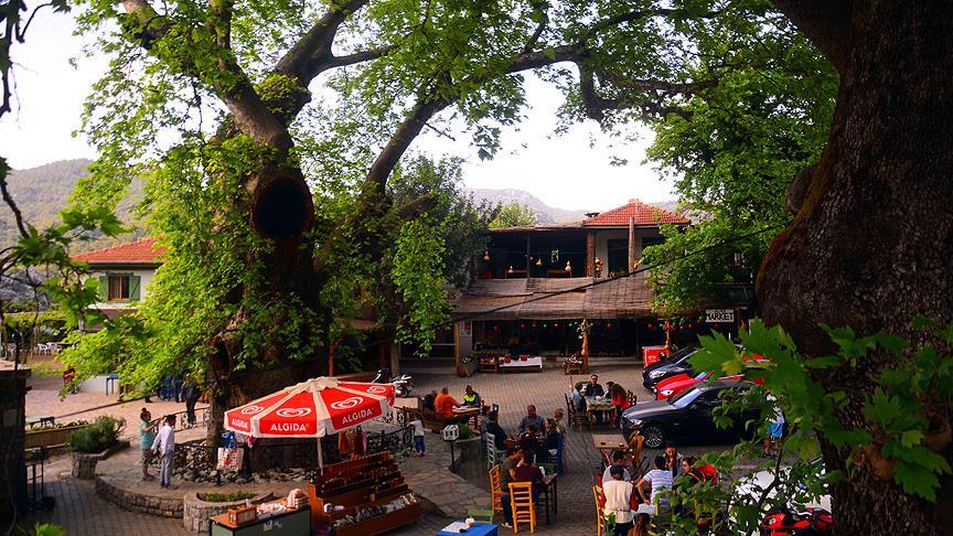 Muğla'nın Marmaris ilçesine bağlı Bayır Mahallesi'nde bulunan ve bin 900 yaşında olduğu belirtilen dev çınar ağacını görmek için mahalleye gelen yerli ve yabancı turistler, yöre ekonomisine önemli katkıda bulunuyor.