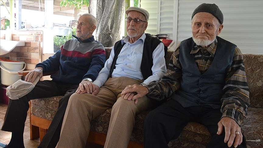 Kimliklerinde 1929 yazan ancak 1920 doğumlu olan 3 asker arkadaşı, Hürriyet ve İhsaniye mahalleleri muhtarlarının öncülüğünde yaklaşık 70 yıl sonra yeniden bir araya geldi.
