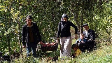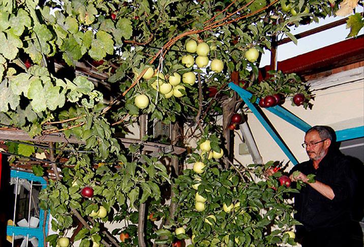 AA muhabirinin aldığı bilgiye göre, merkeze bağlı Ziyaret beldesinde esnaflık yapan Hamdi Sırrı Yılmaz (62), iş yerinin önüne diktiği ve daha sonra aşıladığı elma ağacında, ''starking, misket, garafonya, golden ve granny smith'' olmak üzere 5 farklı çeşit elma yetiştirdi.