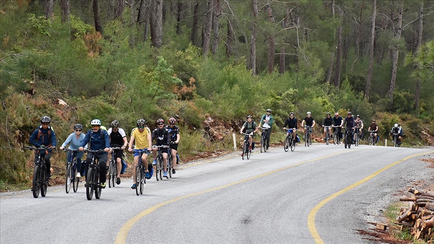 Bisiklet turlarına katılanlar ormanlık ve zeytin ağaçları arasında pedal çeviriyor. Ayrıca yürüyüş rotasında olduğu gibi bazı bisiklet rotaları da tarihi yerlerden geçiliyor.