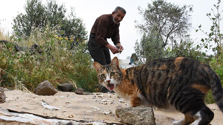 Muğla'nın Bodrum ilçesinde yaşayan 70 yaşındaki Ali Karaduman, her gün yolunu gözleyen sokak kedileri için bisikletiyle 4 kilometre mesafe katedip, hayvanları balık ve mamayla besliyor.