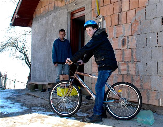 AA ekibinin kendisine gönderilen hediyeleri ulaştırdığı Sanid Ramoviç, "Bundan böyle okula bana hediye edilen bisikletle gideceğim, çok mutluyum" diye konuştu.