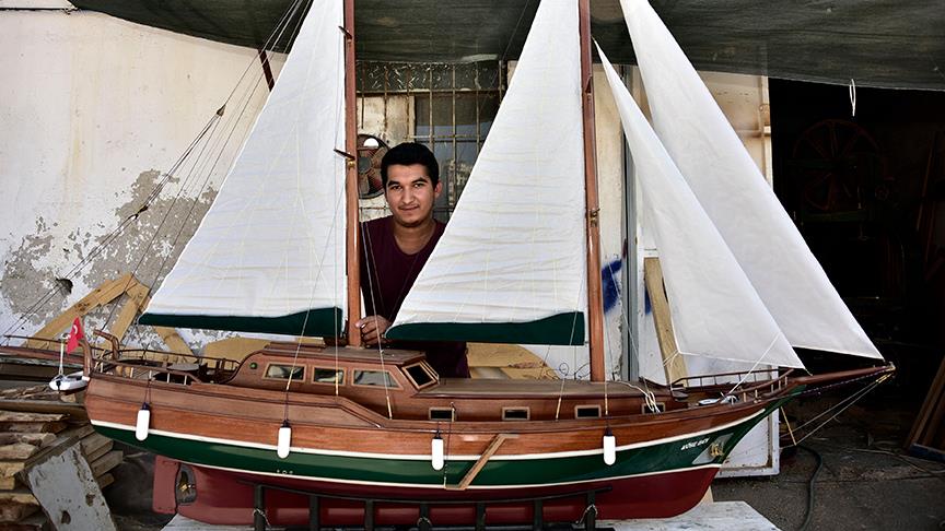 Bodrum ilçesinde, babasının yardımıyla öğrendiği tekne yapımını geliştiren Serkan Köse (18), yaptığı iki metrelik "Aynakıç" modeli tekne maketi ile ilgi odağı oldu.