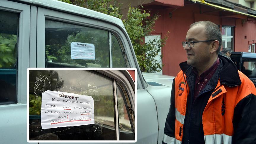 Zonguldak'ın Alaplı ilçesinde televizyon tamirciliği yapan bir vatandaş, kamyonetinin aynasını çalanları, "Bu aracın aynasını alan kişi, kameradasın. Derhal yerine koy, yoksa sen bilirsin." yazılı notla uyardı.