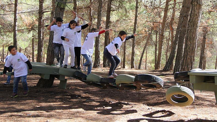 Ayda iki kez kampa gelen 10-18 yaş aralığındaki Suriyeli çocuklar, zorlu parkurları tek tek aşarak, korkularını yenebiliyor.