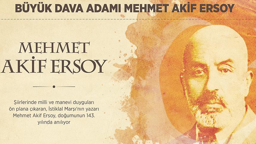 Şiirlerinde milli ve manevi duyguları ön plana çıkaran, İstiklal Marşı şairi Mehmet Akif Ersoy doğumunun 143. yılında anılıyor.