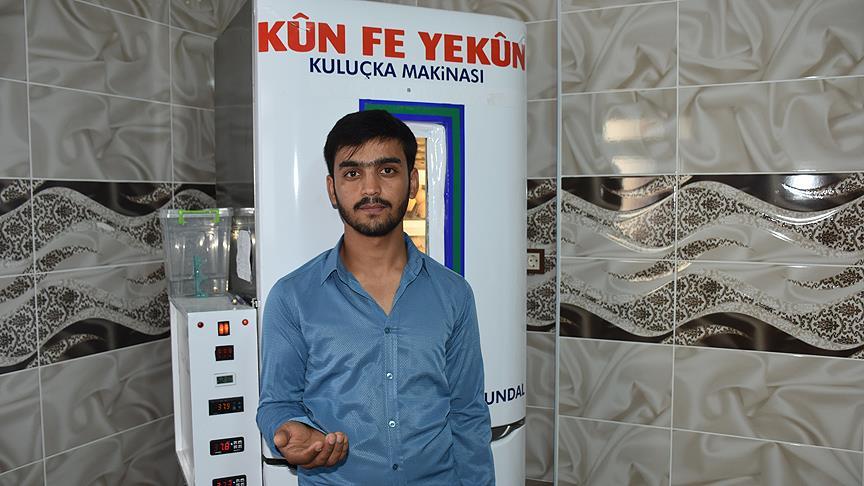 Diyarbakır'da hurdadan aldığı buzdolabını kuluçka makinesine dönüştüren 22 yaşındaki Yusuf Altundal, yumurtalardan civciv çıkarıp yetiştiriyor.