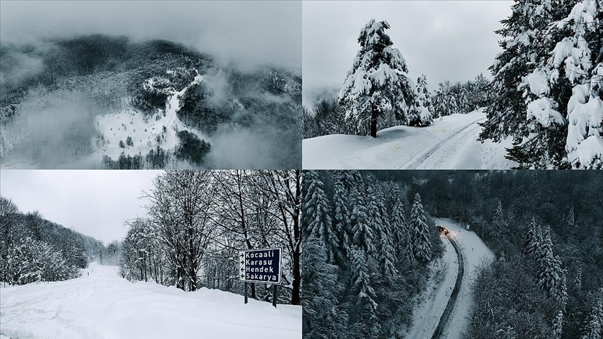 Kentte hafta içi etkili olan yağış sonucu zengin bitki çeşitliliğiyle "doğa ve kültür yolu"nu bünyesinde barındıran Çam Dağı'ndaki ormanlar karla kaplandı.