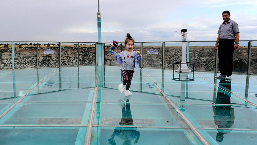 "Dünyanın en uzun ikinci kanyonu" olarak bilinen Ulubey Kanyonu, 131 metre yükseklikte cam teras kurulmasının ardından son iki yılda yaklaşık 250 bin ziyaretçiyi ağırladı."Park Kanyon Projesi" kapsamında 2015'te gemi güvertesi şeklinde yapılan 135 metrekarelik cam terasa gelen yerli ve yabancı turistler, bol bol fotoğraf çektiriyor.