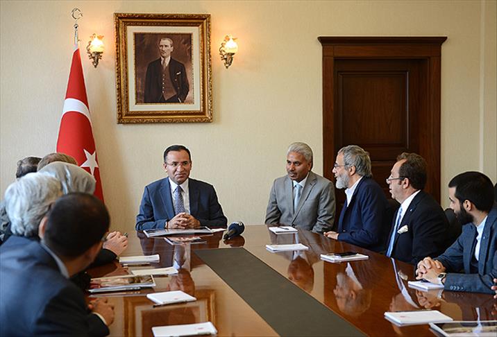 Başbakan Yardımcısı Bekir Bozdağ, Başbakanlık merkez binada, Aziz Akgül, Yusuf İslam, Abdul Hakeem Murad, Sohail Bhatti, Abby Yusuf, Majid Hussain ve Zeynep Coşkun'dan oluşan Cambridge Cami Projesi heyetini kabul etti.