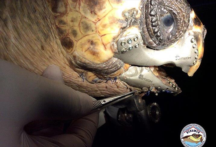 Pamukkale Üniversitesi (PAÜ) Deniz Kaplumbağaları Araştırma, Kurtarma ve Rehabilitasyon Merkezi'nde (DEKAMER) yaralı halde bulunan caretta carettaya, cerrahi operasyonla "3D çene protezi" takıldı.
