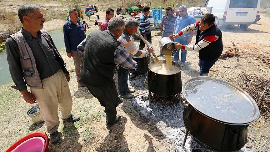 Birlikteliğe vesile olan bu dua etkinliğinin, mahalle sakinlerinden imece usulüyle toplanan küçükbaş hayvan, bulgur, tereyağı, ve ayrandan oluştuğunu aktaran Muhtar Aslan, "Her yıl nisan ayı içerisinde yağmur duasına çıkıyoruz. Geleneğimizin devam etmesi için eşlerimizi ve çocuklarımızı da getiriyoruz. Bu sayede çocuklarımız geleneği yaşatacak. Birlik içerisinde bereketli bir yıl olması için dua ediyoruz. Kendimizin pişirdiği yöremize has 'donguş' yemeğini misafirlere ikram ediyoruz" diye konuştu.