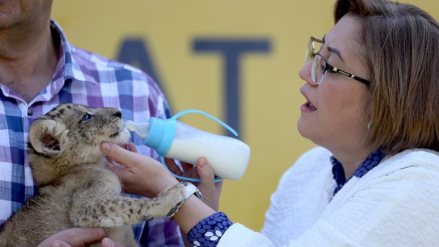 Gaziantep Büyükşehir Belediye Başkanı Fatma Şahin, belediye bünyesindeki hayvanat bahçesinde koruma altındaki yavru aslanı ziyaret etti.