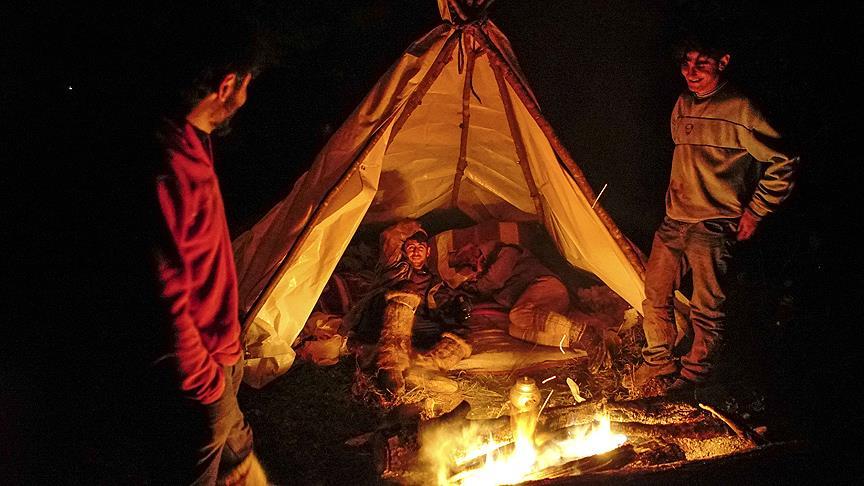 Vadi boyunca hayvanlarını otlatarak indirmeye çalışan çobanlar, gece boyunca kurdukları çadırlarda kalıyor. Büyüklüğüne göre ortalama üç çobanın görev aldığı sürülerde iki çoban uyumaya çalışırken diğeri dondurucu soğukta hayvanlar için nöbet tutuyor. Nöbetlerde odun ateşinde demlenen çay ise çobanların zorlu yolculukta ayakta durmalarına olanak sağlıyor.