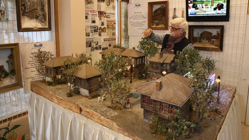 "Doğadaki atıkları değerlendiriyorum. Masrafsız geliyor bana, doğayı da kolluyorum. Bundan dolayı çok memnunum. Beğendiğim bir evin fotoğrafını fotokopiyle büyütüyorum. Sonra resmi inceliyoruz. Evin şekli neyle yapılmış, ona göre doğadan malzeme topluyorum. Taşı sahilden topluyoruz ama dikkat ettiğim şey, renkleri ve ebatları. Bunlar benim için çok önemli. Önce malzemeyi toplamaya başlıyoruz. Bunda soba borusu varsa meşrubat pipeti, paslı tenekeler ön plana çıkıyor. Çatıları oluklu mukavva yapıyorum. Evin önünde sarmaşık varsa yediğimiz üzüm koçanıyla bunu yapıyorum. Bunun gibi şeylerle eserimi ortaya çıkarıyorum."