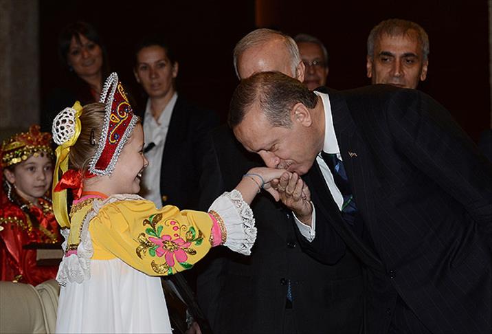 Başbakan Recep Tayyip Erdoğan, Başbakanlık yeni binada, TRT Çocuk Şenliği kapsamında çok sayıda ülkeden gelen çocukları kabul etti.