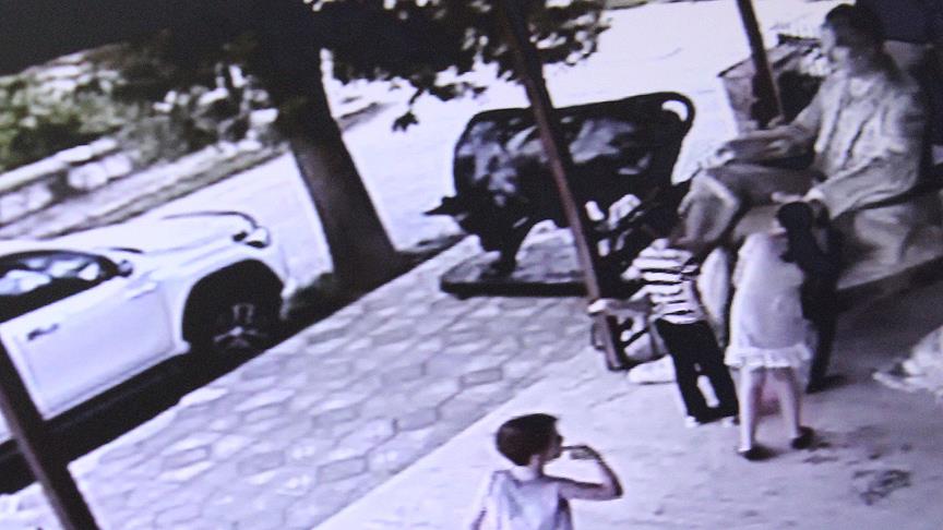 Karaağaç Mahallesi'nde heykeltraş Müslüm Özcan'a ait sanat atölyesinin önünde sergilenen Atatürk heykeline çocukların gösterdiği sevgi dolu davranışlar atölyenin güvenlik kameralarına yansıdı.
