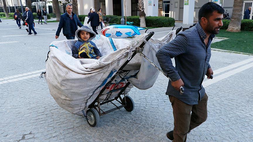 Oğlu Ali'yi üzerine oturttuğu atık kağıt toplama arabasıyla İzmir sokaklarını turlayan baba Berakat, AA muhabirine yaptığı açıklamada, Türkiye'de zor olsa da savaştan ve ölümden uzak bir hayat kurduklarını anlattı.